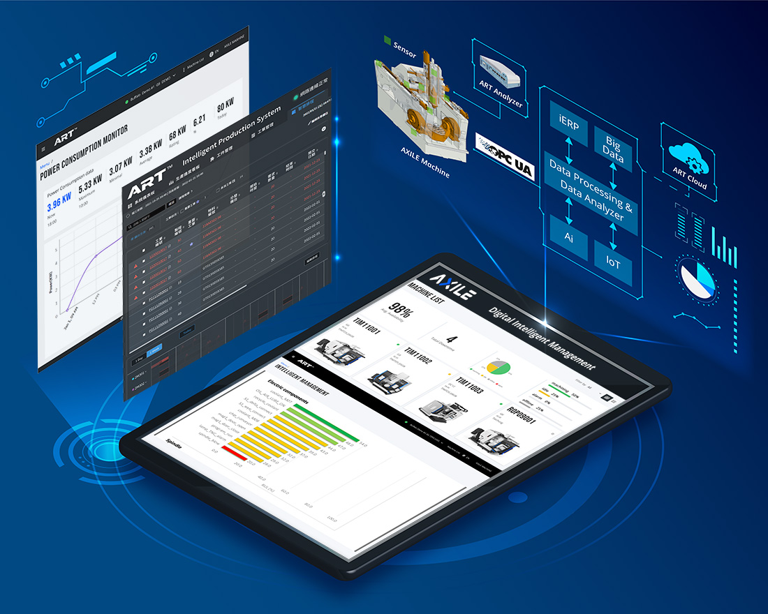 As a machine tools builder with a solid digital management background, AXILE understands the need to integrate environmental and economic aspects into its operations. Therefore, it has developed the ART™ system to focus on improving operational performance and the energy efficiency of its products. To deliver agile smart machining and that all-important competitive edge, ART™ enables 24/7 automated production and allows operators to digitally manage, plan and strategise through comprehensive data analysis.