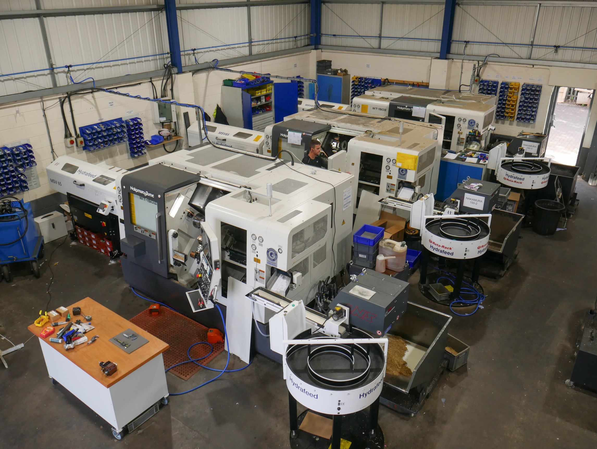 Nestled between Derby and Nottingham, the subcontractor manufactures everything from high-end kitchen and bathroom taps and ancillaries to fire suppression systems, camera and scientific devices to hydraulic components for the rail industry, primarily machining brass, stainless steel and aluminium. Discussing the variation of parts manufactured, Paul says: “Our sliders produce small components and the Nakamura machines are dedicated to larger parts. However, when it comes to machining small stainless parts, we move these to the Nakamura’s. The Nakamura’s are more powerful and robust, which results in higher cutting speeds and feeds, better surface finishes and extended tool life. Whilst sliders will be inherently faster than fixed-head machines, the ability to use larger more rigid tools on the Nakamura’s along with the flexibility to machine any part with multiple tools cutting simultaneously is fantastic. Furthermore, this stability and versatility means we can get jobs off the machines in one hit and by using the Hydrafeed Rota-Rack system on the WT150II-F machines, we can run the machines unmanned over the weekends.”