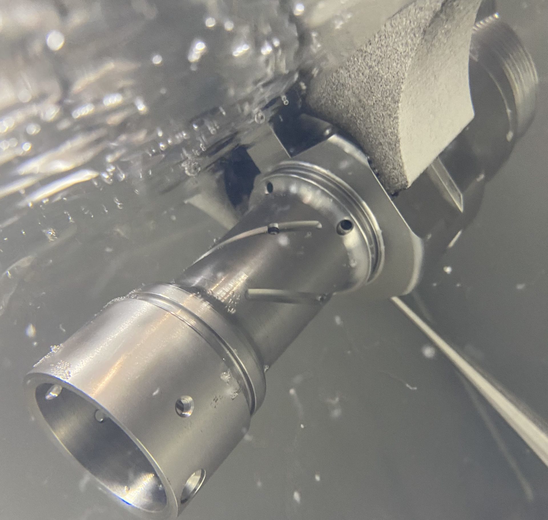 Regarding the process, components to be deburred are guided in a water basin along the tip of an ultrasonic sonotrode, whose generated vibrations cause the burrs and chamfers to break off in an automated and energy-efficient manner. Stimulated by a generator, the sonotrode oscillates back and forth 20,000 times per second over 0.1 mm. These vibrations move burrs and chamfers back and forth until they are broken off with sharp edges in a process-safe manner. Similarly, ultrasonic deburring does not apply temperature to sensitive components, which can lead to deformation and discolouration. In addition to deburring common metals, UltraTec systems can be used with components made from various titanium and nickel alloys, as well as fibre-reinforced plastics.