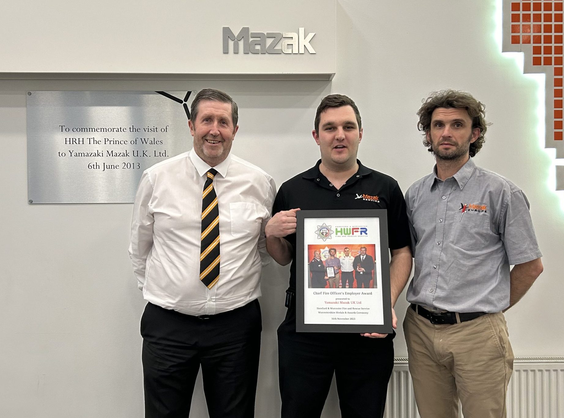 Yamazaki Mazak Honoured with Fire Service Award